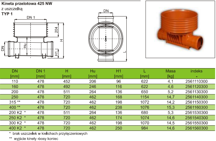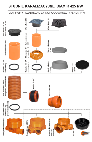 przeznaczone do przyłączenia pionowych rur trzonowych (dla rury wznoszącej karbowanej 475/425 NW);