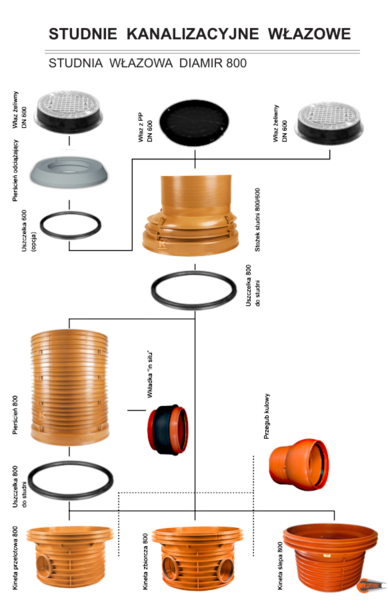 Prefabrykowane dno studni kanalizacyjnej DN 800 przeznaczone do sieci kanalizacji grawitacyjnej.
